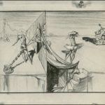 It’s unusual in the realm of story sketches made for Disney films in the 1940s that five and a half minutes of animation would have a number of story board sketches approaching 200. Equally odd is the fact that so many elements in the drawings animate when played sequentially. The implication of the 174 drawings that I believe make up the known Animatic drawings for the project (170 used to make the Destino Animatic, the three present in the photographic record that are not in the newly found collection, and one drawing that was sent me after my lecture at the 2017 Society for Animation Studies conference at the Università degli Studi di Padova, in Padova, Italy) would mean that 31.6 of these drawings would represent one minute of storyboard time if squeezed into the five and a half minute running time used in the 2003 film to illustrate Dali’s vision. Meaning there would be a single drawing for every 2 seconds of animation. That quantity of “story sketches” is rather high for a typical storyboard.