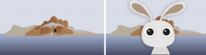 The six-minute animated short Invasion! tells the story of a little bunny named Chloe who witnesses two aliens landing in her forest with the intention of invading Earth. Intimidated at first, she eventually gathers courage and scares them away. We first encounter Chloe from a distance as she snaps out of her den. But around two minutes into the film, she jumps closer to the spectator’s position (Figure 5, right).