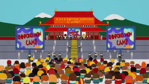 In this sense, the 1999 episode “Chinpokomon” (s03e11) exemplifies this approach by imagining a deceitful military campaign against the USA orchestrated by a Japanese toy company called “Chinpokomon” (meaning “little-penis monsters”). Drawing the story from the context of the American Pokémon boom, Parker and Stone present a three-act narrative where Pokémon-like anime characters persuade American kids to destroy the “capitalist American government” by re-bombing Pearl Harbor, with very hilarious and pseudo-satirical outcomes.[i] On the intertextual level, the episode skilfully narrativizes American amusement, fear and cultural bias over the Japanese entry into the US marketplace by blending together the post-war xenophobic American mindset towards Japanese culture (Tchen) with the “befuddled acceptance” of Pokémon by certain Western adults (Allison 2006b 250). Moreover, due to the nature of the story, and the many analogies between the Pokémon and South Park transmedia systems, the episode itself epitomizes well the progressive hybridization and glocalization of comics and cartoons in the West which Pellitteri and others (Tobin; Denison and Agnoli) discuss in a transnational perspective. Notably, Allison (2006a 249-251) was the first, and perhaps the only one, to recognize the theoretical salience of “Chinpokomon” devoting a few pages to an analysis of the episode for the purpose of deciphering the Western reaction to Pokémon and J-pop culture booming.