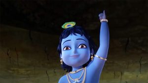 Figure 7. Krishna holding up the hill with his little finger in Little Krishna (2009).