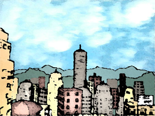 Fig. 5 - An image with buildings with texture projection