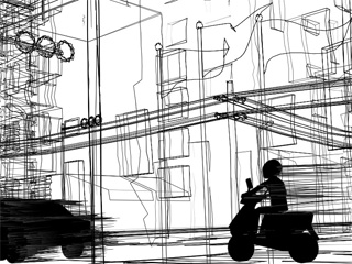 - The simulation of the ‘dry brush’ with 3D computer techniques can be applied to express the speed of objects or characters with 2D graphical styles as shown in Figure 4 and Figure 6.