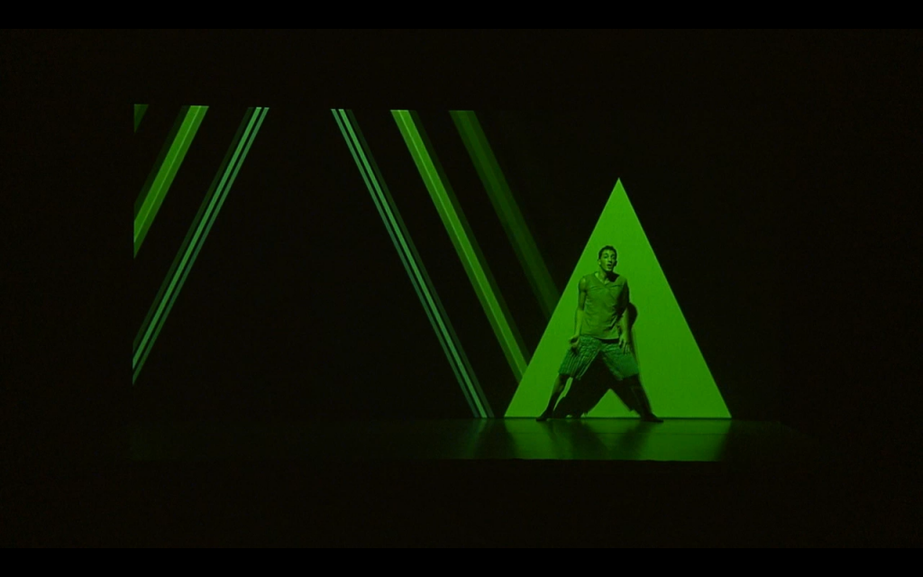 The show was inspired by the work of minimalist artist Sol LeWitt, who already had an intervention in the world of acting and dance in Dance1, performed at the Brooklyn Academy of Music in December 1979. This well-known and award-winning work was directed by Lucinda Childs, with music by Philip Glass, and narrated by Sol LeWitt himself, and was re-released in 2011. The film was projected on the dancer’s bodies on stage, via a drape hung at the front of the stage, and consisted of a large geometric grid on which the dancers performed. The difference in scale between the real dancers and the ones projected, as well as the repetitive movements and music by Glass, created a spectacular performative pattern coupled directly with the minimalist current of previous years.